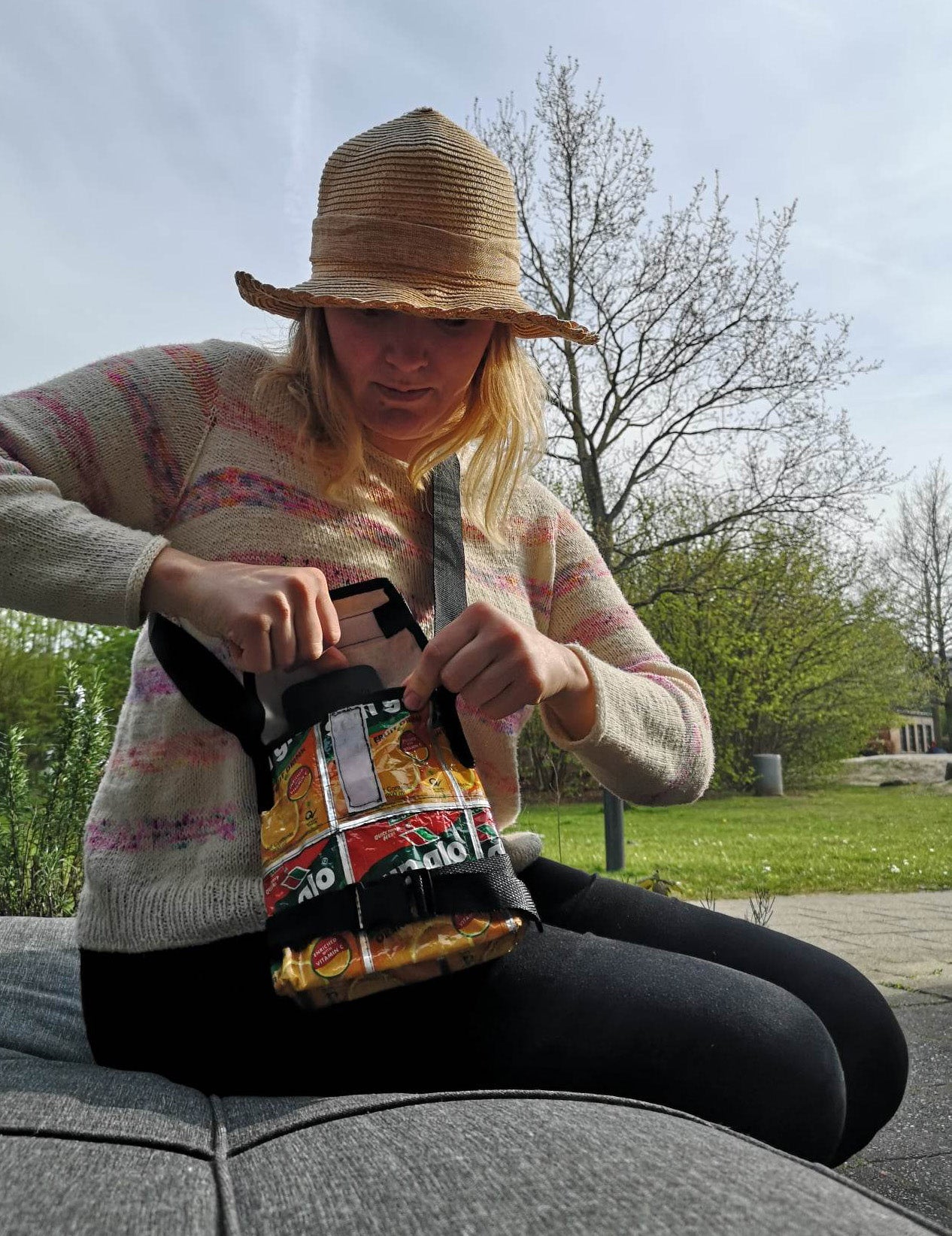 Gjenbrukt emballasje. Fõr av bomull.