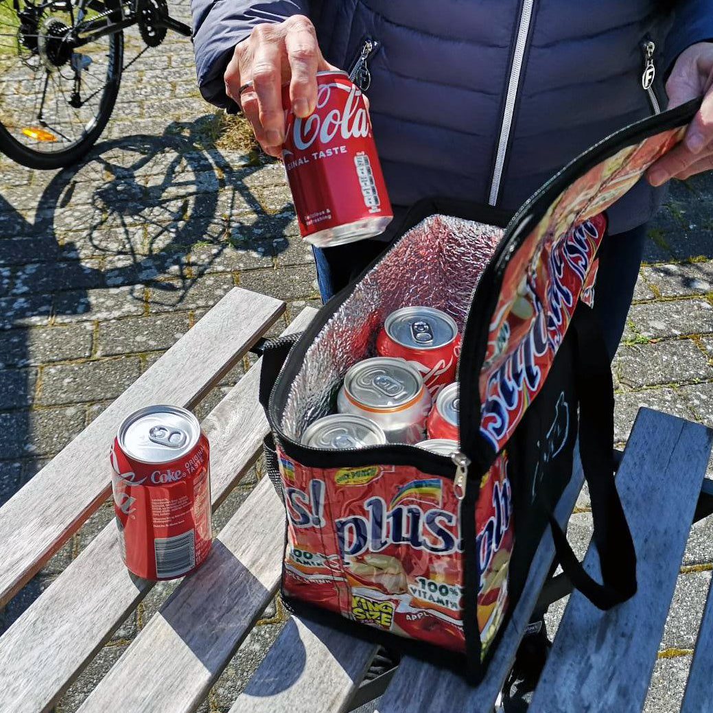 Denne sykkeltasken er perfekt for deg som ønsker å ha med kald drikke eller snacks på tur. Tasken fungerer som en kølebag og er laget av gjenbruksmateriale. Den er enkel å feste på bagasjebrettet og sitter godt fast. Med denne bærekraftige løsningen kan du nyte en kald drikke eller snacks på tur, samtidig som du bidrar til å redusere avfallsmengden og bevare miljøet.