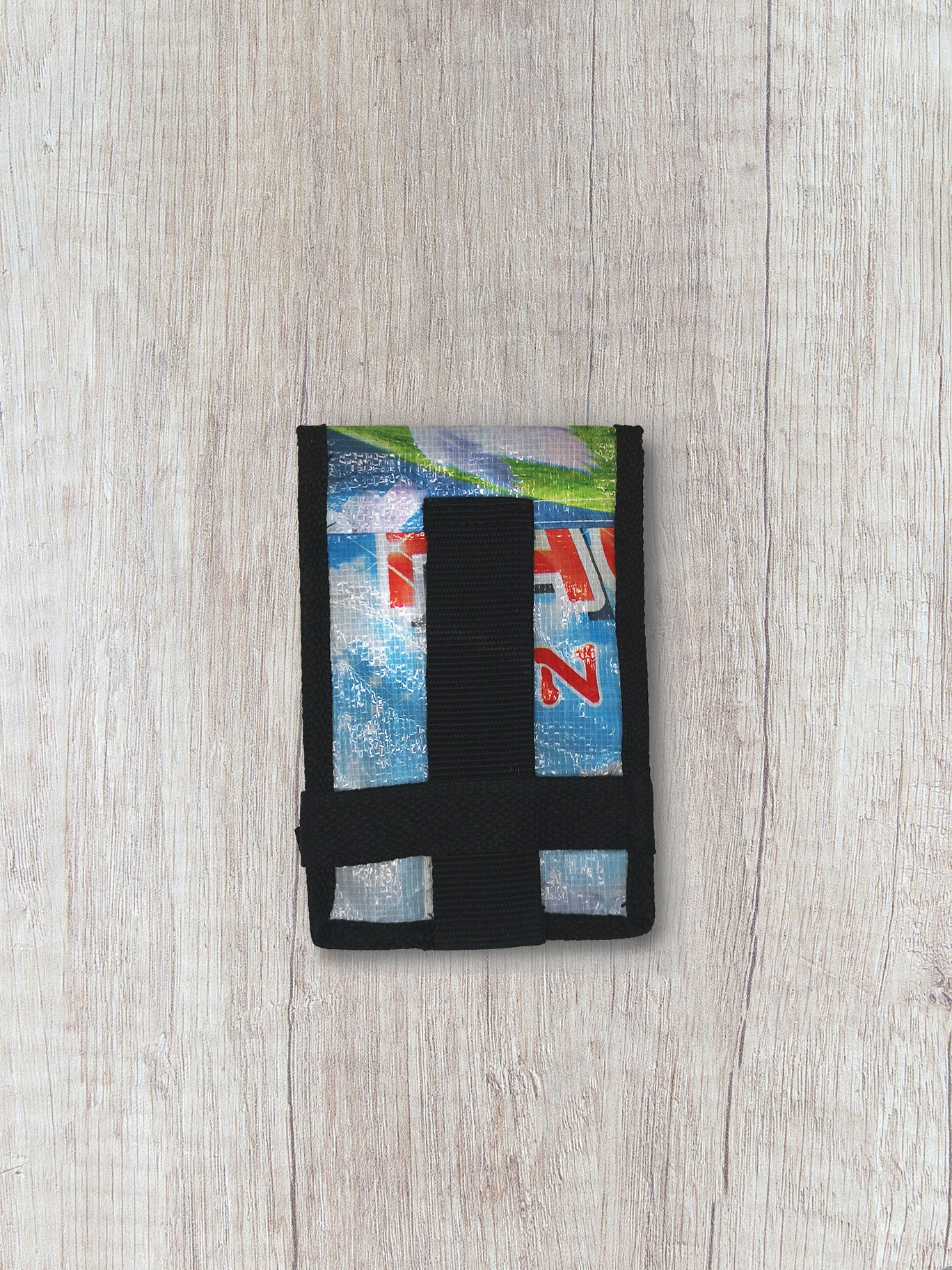 Denne sykkeltasken er perfekt til å holde mobiltelefonen mens du sykler. Den er enkel å feste på styret og å ta ut mobilen mens du sykler. Tasken er laget av gjenbrukte rissekker. Med denne bærekraftige løsningen kan du nyte sykkelturen mens du gjør en positiv forskjell for miljøet.