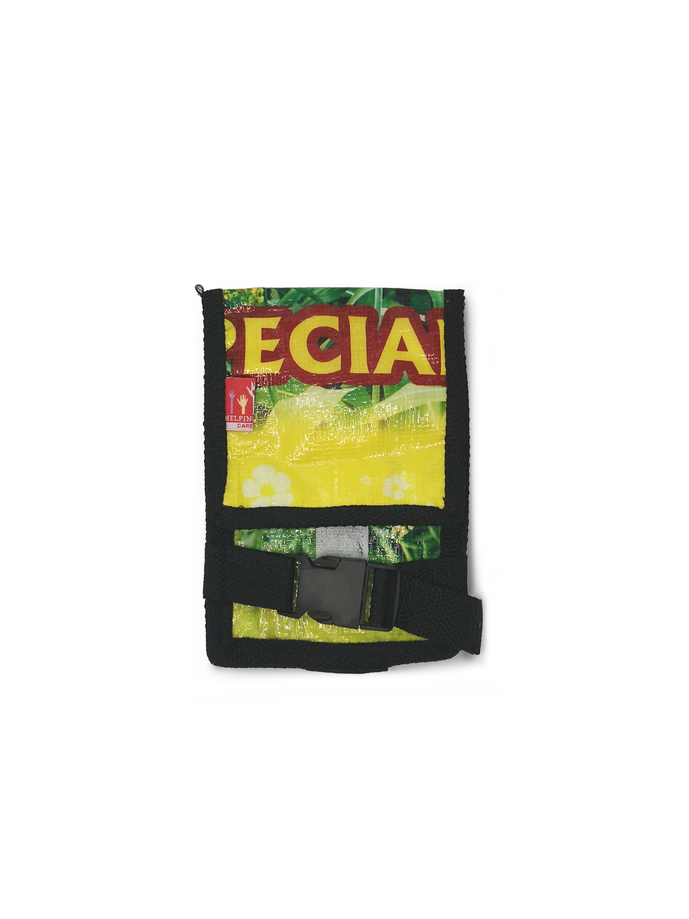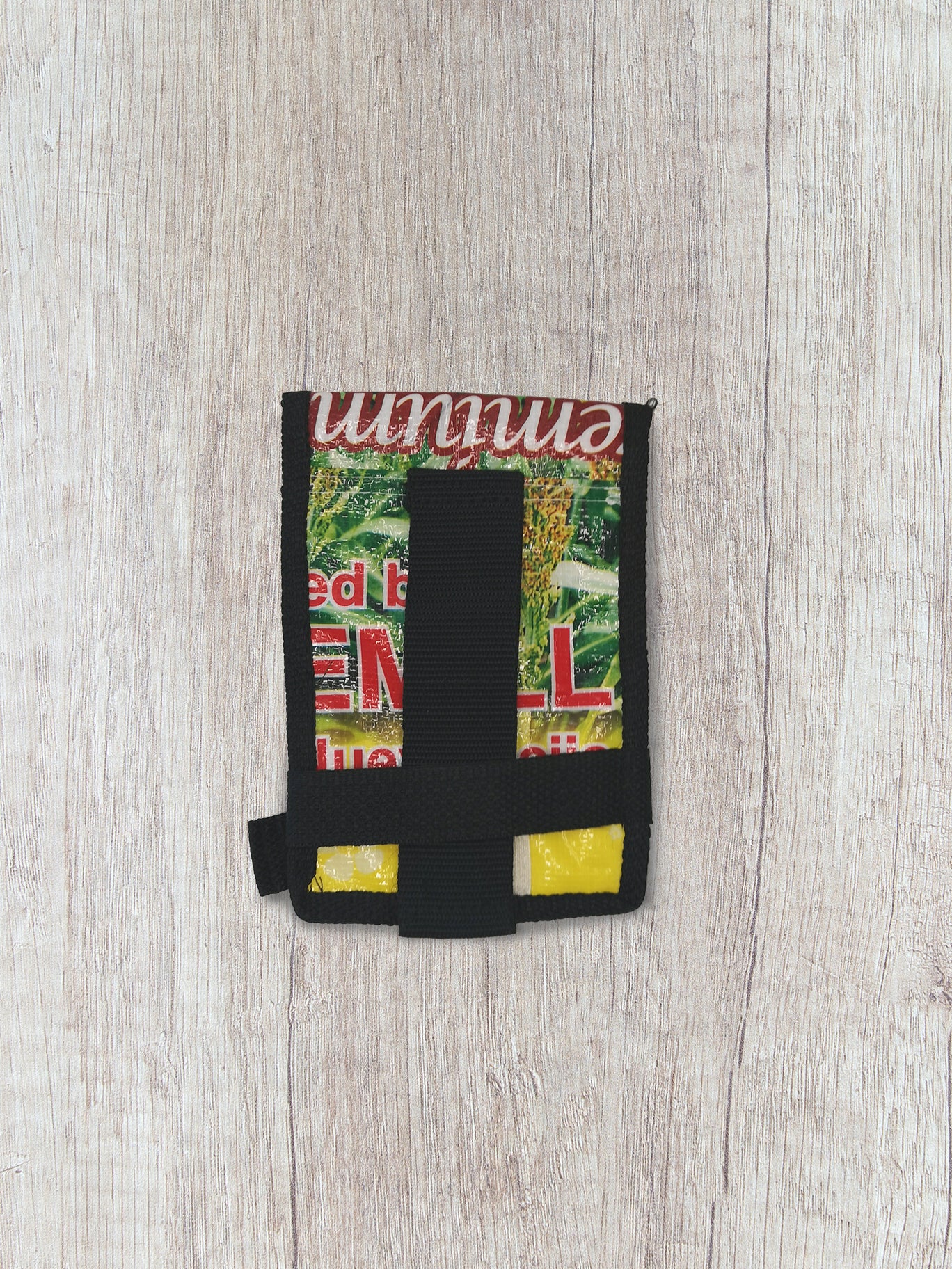 Denne sykkeltasken er perfekt til å holde mobiltelefonen mens du sykler. Den er enkel å feste på styret og å ta ut mobilen mens du sykler. Tasken er laget av gjenbrukte rissekker. Med denne bærekraftige løsningen kan du nyte sykkelturen mens du gjør en positiv forskjell for miljøet.