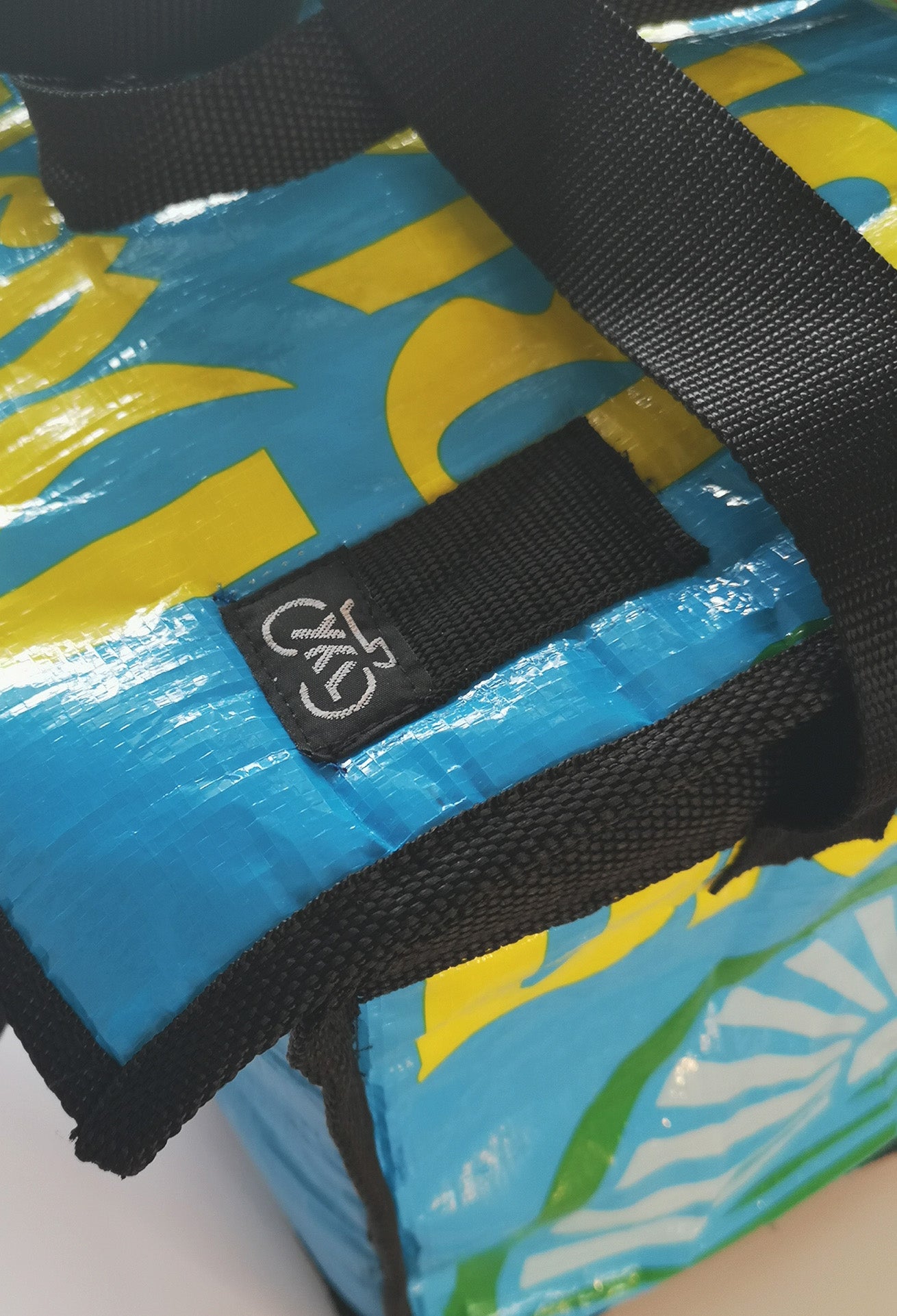 CYKLbag shopping er lett å pakke, bære og etterpå feste på sykkelen. Den er designet med fokus på bruker- og miljøvennlighet. Baggen er laget av gjenbruksmaterialer, så du kan føle deg vel hver gang du bruker den, vel vitende om at du bidrar til å redusere avfall og skåne miljøet.