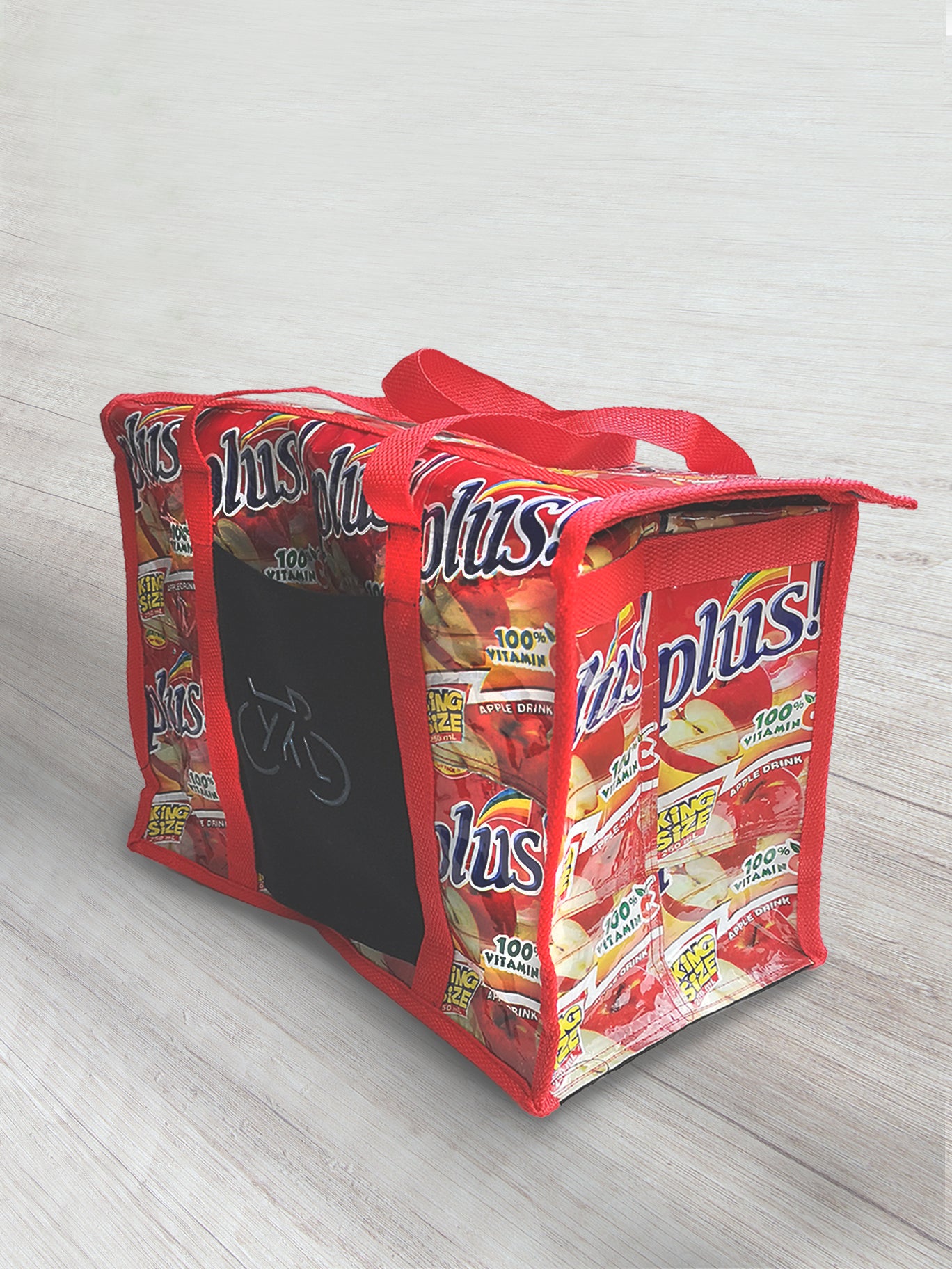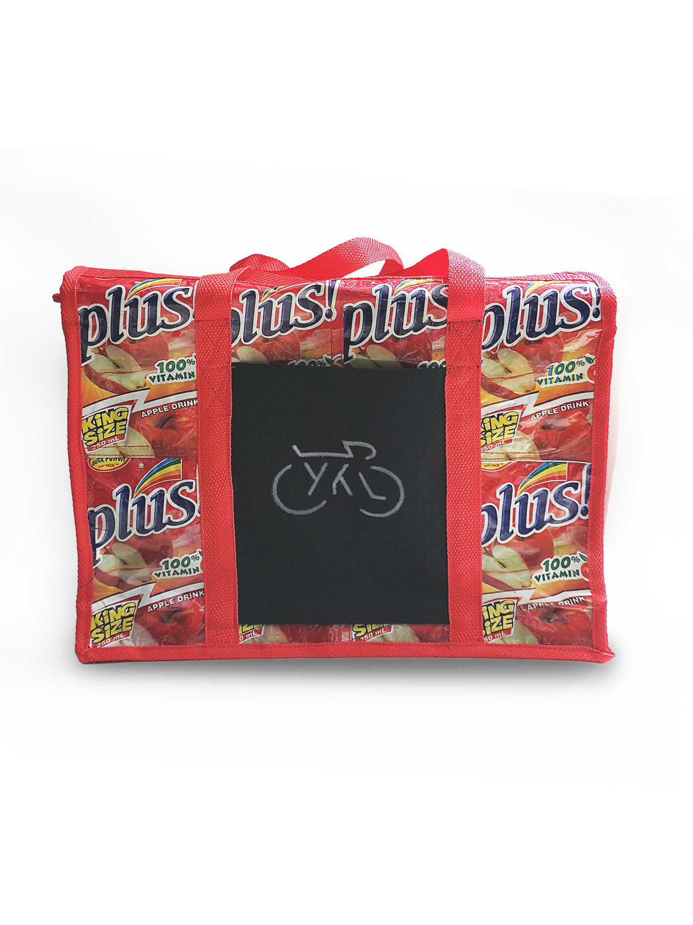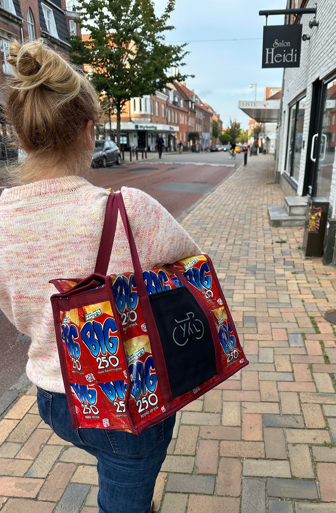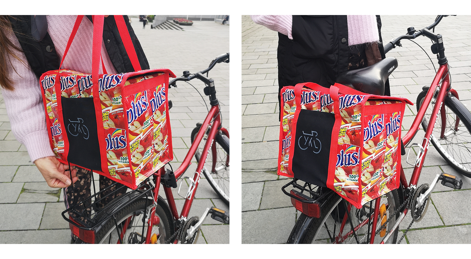 CYKLbag shopping er lett å pakke, bære og etterpå feste på sykkelen. Den er designet med fokus på bruker- og miljøvennlighet. Baggen er laget av gjenbruksmaterialer, så du kan føle deg vel hver gang du bruker den, vel vitende om at du bidrar til å redusere avfall og skåne miljøet.