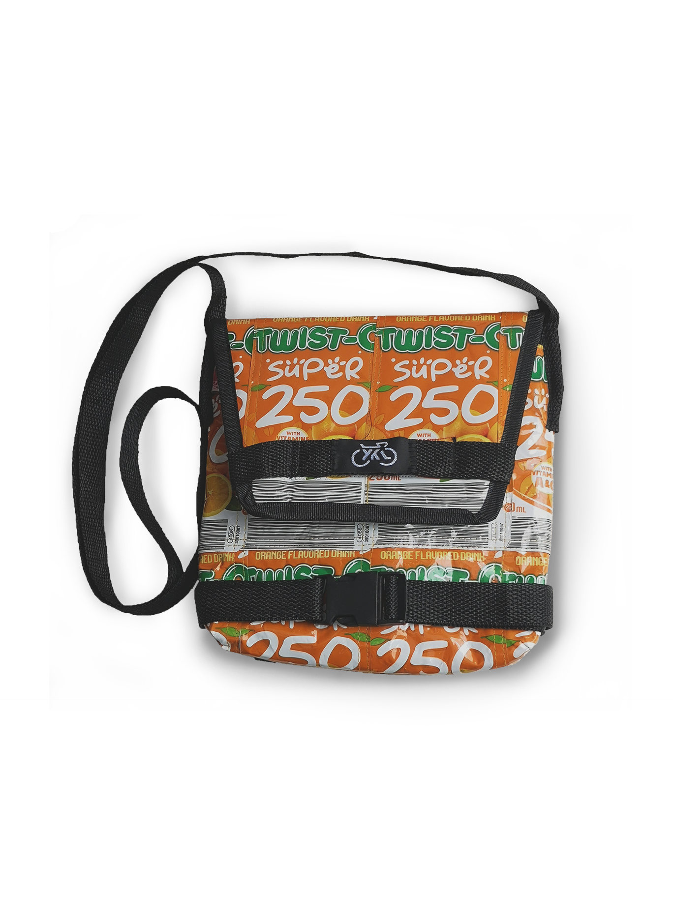 Denne sykkelvesken er perfekt å ha på styret pluss bruke som skulderveske. Den er laget av gjenbruksmaterialer, og er et bærekraftig valg. Vesken er enkel å feste og ta av, og derfor praktisk når du er på farten.